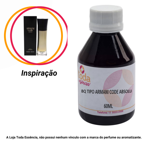 Bq. Tipo Armani Code Absolu - 60 ml - Inspiração "Armani Code Absolu" apresenta descrição olfativa: Balsamico, Especiado, Amadeirado, Musk.