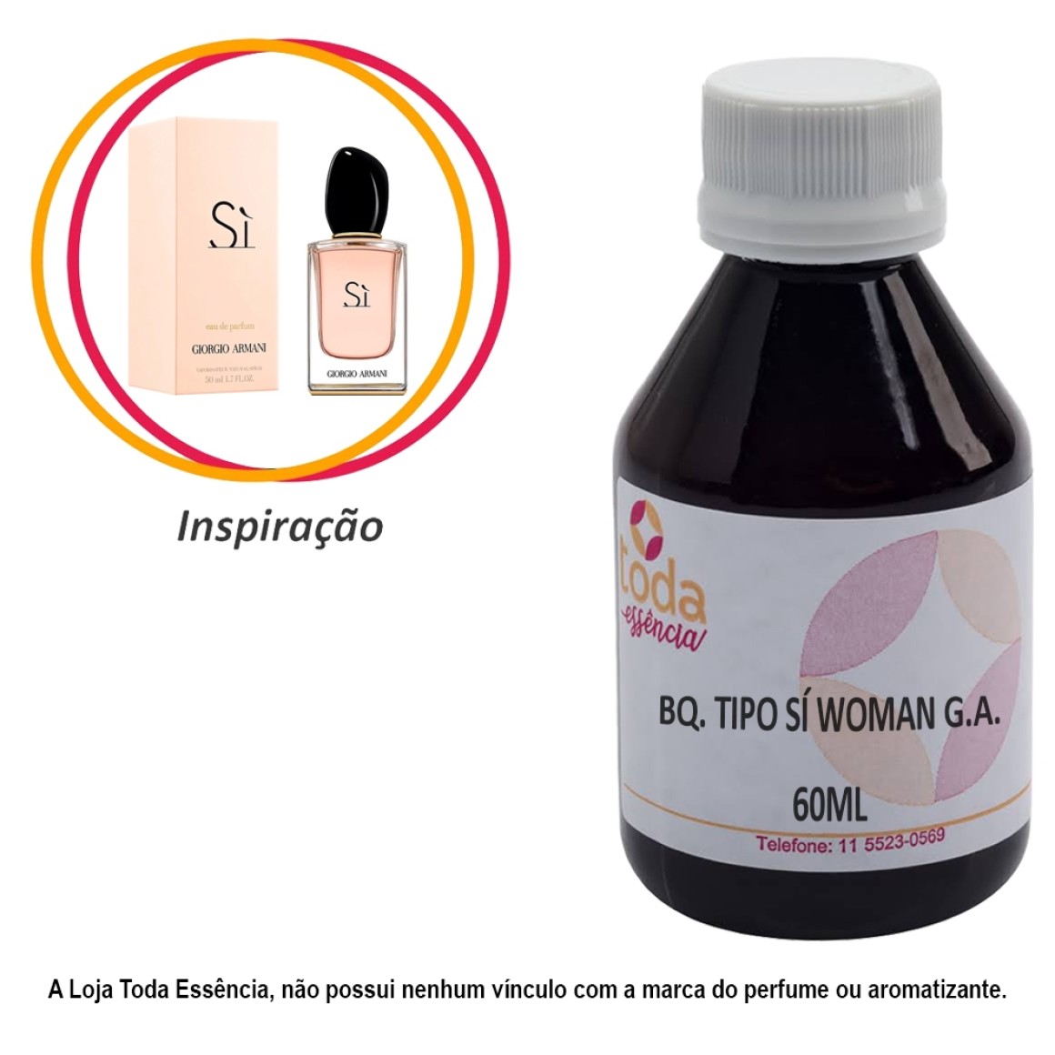 Bq. Tipo Si Woman G.A. - 60 ml- Inspiração "Si Woman Giorgio Armani" apresenta descrição olfativa: Floral, Frutado, Amadeirado, Balsâmico.